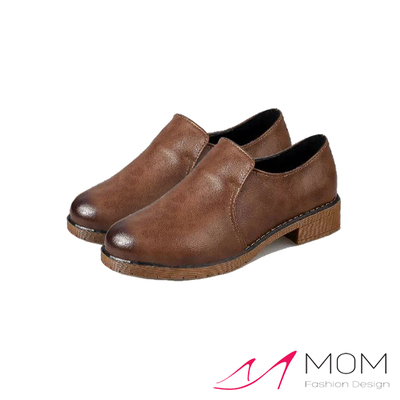 【MOM】英倫風時尚復古擦色低跟休閒鞋 便鞋(駝色)