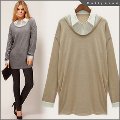 【好萊塢style】假兩件式寬鬆感針織上衣(米、灰 2色)
