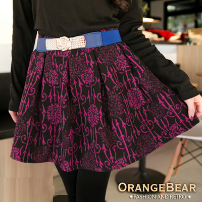 OB嚴選-華麗花紋毛呢短裙‧共二色