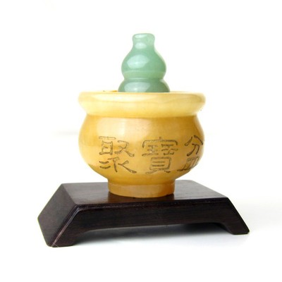 內容物:黃水晶碎石,東菱玉葫蘆,黃玉聚寶盆,原木底座