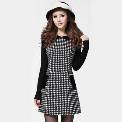 【韓國K.W.】快速到貨-復古歐美 千鳥格娃娃領洋裝(黑色)