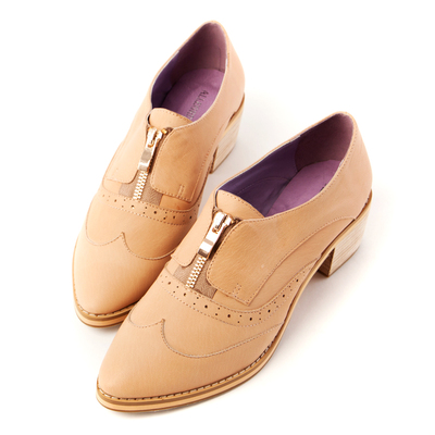 ALLEGREZZA‧ 真皮原木粗跟牛津鞋-卡其色