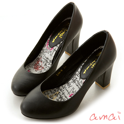amai馬卡龍色調高跟鞋 百搭素面圓頭-百搭黑