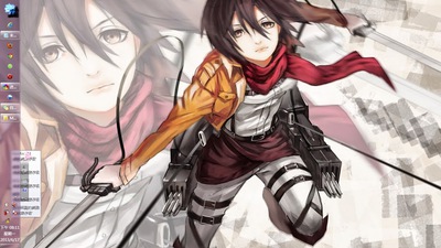 進擊的巨人,三笠·阿克曼(ミカサ・アッカーマン,Mikasa Ackerman,的Win7萌化佈景主題。