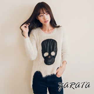 【均一價299】骷顱珍珠前短後長Q毛針織衫(杏色)經常缺貨喔!限時限量很殘酷!要買要快.....