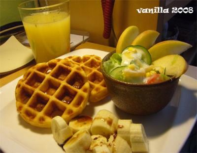 一直覺的度量很麻煩但有十一個東西太多或太少都會影響他的味道甚至成功與否因為再很意外的情況下便成人妻所以開始坐著人妻會做的事做早餐^^(我很努力而且堅持到底)那天,我再家樂福逛逛發現了一本書【愛上鬆餅粉...