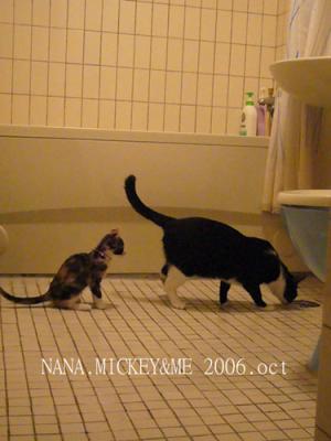 MICKEY喜歡喝浴缸的水... NANA喜歡喝排水孔的水... 他們都有自己的碗卻不喝... 就像我只愛喝珍珠綠茶... 無所謂啦~至少不要再像以前喝馬桶的就好...