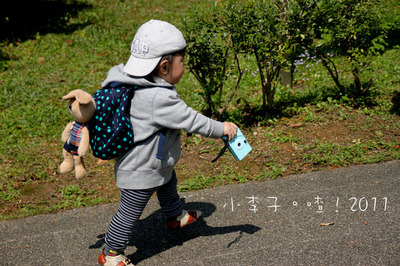 小李子滿一歲三個月了這陣子...待他出門時,都讓他背著自己的小背包尋練獨立和責任背包裡,有一片尿片,一個水壺,...