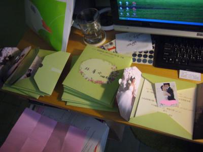 體貼辛苦工作的另一半,看著睡死打呼的老公一邊辛苦的挺著4月懷胎在深夜加工的孕婦我的婚禮周邊,最早做的就是喜帖了...