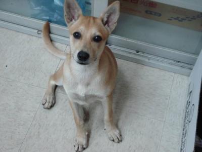 最初我們將她放養在工廠,陪著警衛的小黃狗ㄧ同玩耍。