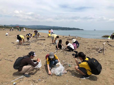 第一次跟著團體淨灘團結力量大今天要穿黃色的衣服天氣很熱大家都沒在怕的唷!寶島淨香團 好像都是年輕的大學生 很熱...