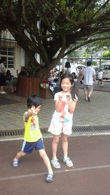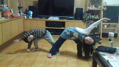 突然心血來潮擺姿勢 呼喚媽媽拍照的兩人說這是我平常做的瑜珈動作我看來看去也看沒有不過還真是滿好看的 尤其兩人對...