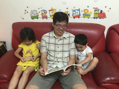 某一天的講故事時間假日早上睡飽飽是幸福慢慢吃自己的早餐一邊看家人的笑容是奢華的幸福(是說小黑三寶有這麼好笑嗎?...