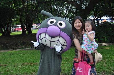 除了早到禮是可愛的乳牛杯杯  還跟迎賓人偶細菌人和麵包超人合照