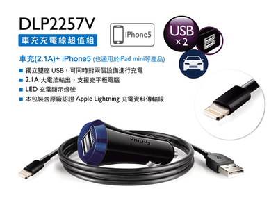 momo,momo購物台,momo購物網>【PHILIPS】DLP2257V 雙USB 2.1A快速車充(含Apple Lighting傳輸線) ★★★【PHILIPS】DLP2257V 雙USB 2...
