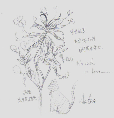 lastscan3(1).jpg你的視線 就是我的勝利一片廣闊的藍天 點綴著幾朵可愛的白雲我躺在草地上 看著不遠處的風車天使 趴在我身旁大樹的樹枝上 對著我笑是阿 那是小雪 她有了美麗的白色翅膀好久好...