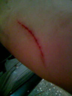 晚上老爸回來後 看到我把右手的袖子給捲起後(該傷口約有10公分)