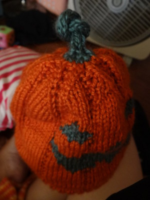 隨著年紀的增長 (或許是因為外頭溫度終於到了必須戴帽子媽媽才給出門的秋季),這小妮子終於願意帶媽媽打的毛線帽了。第一次打那個cord和葉子,挺有趣的,但是打完就立刻忘記了葉子的打法,下次如果還要打葉子...
