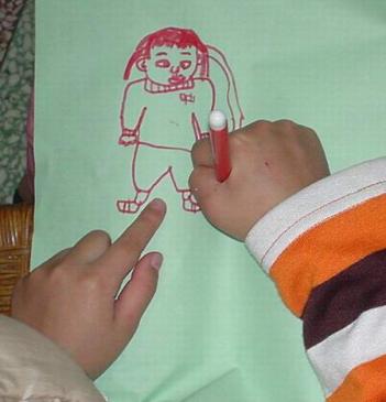 大班的咪咪的素描真的很寫實,她一面看著你,一面老實不客氣的畫出阿公的禿、阿萱的鬥雞眼。所以我一直沒有勇氣當她的模特兒。
