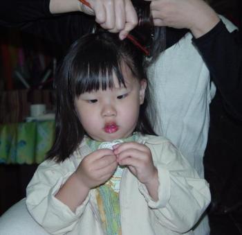 當老師幫家萱綁了美美的髮型,我們去接她下課的時候,她也是如此這般停在車子前面好久,直到有人察覺不對,說:『哇,家萱今天的頭髮綁得好漂亮喔!』
