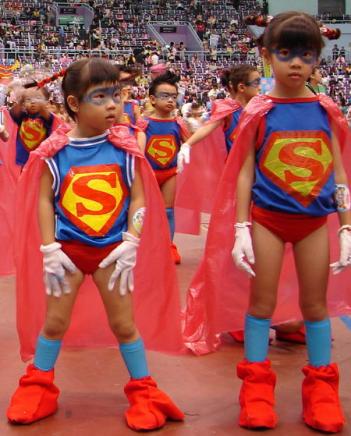 孩子呢?就是喜歡那一身特殊的裝扮,感覺就像萬聖節的提早到來,大家穿著自己的特殊造型滿場跑,誰都不怕孩子走失了,因為單看造型就知道你應該屬於哪個學校~