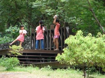 然後,大家就一直抬著頭做學校教的望遠凝視,尋找傳說中的台灣獼猴。於是連路人甲乙丙也跟著我們抬頭望遠保健視力!