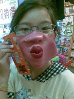 姐姐,妳這個造型會不會太搞笑呀~~一點兒都不驚悚耶!笑死我了。尤其是愛美愛形象的姐姐,居然會選這個造型,哈哈!媽媽一定要冒著被店員阻止的險拍下來啦!哈哈!姐姐,ㄚ妳面具後的嘴型,不會也是這樣嘟著吧!