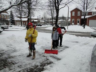 這些小孩,鏟雪像無頭蒼蠅,常常鏟了幾個鐘頭後,還看不到甚麼成績。然後在大人一再一再口頭指導之後,慢慢有個樣子了。(這些大人,都躲在房子裡用嘴巴鏟雪啦!)