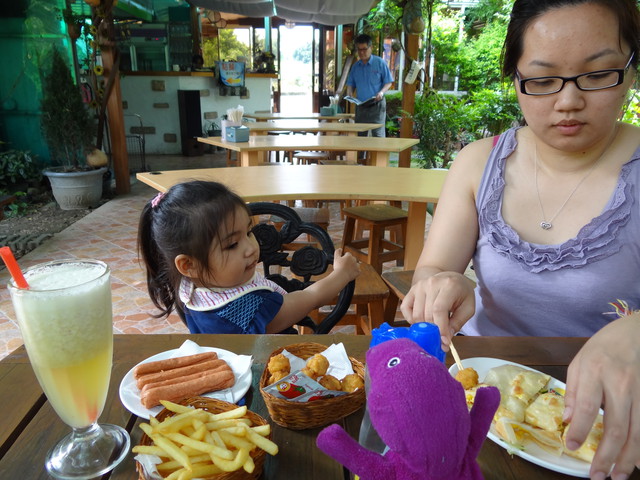 鄉村漢堡的早餐。很讚,地方也讚,可惜小阿姨怕蚊子,所以我們在她們在台灣的日子裡只去一次。