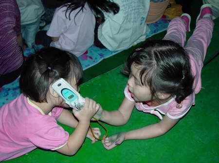 果然,家蓉說:『妳這個先借我,我給妳芭比娃娃!』