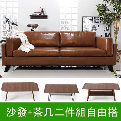 東森購物家具清倉-【H&D】納瑟斯英式三人皮沙發+茶几(客廳二件組任選)