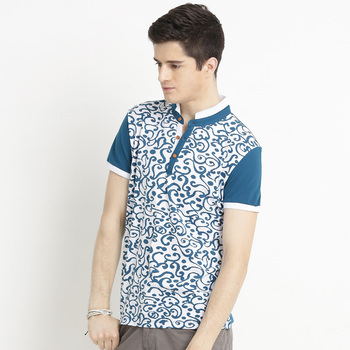 最新推薦-男式滿版印花立領POLO衫 (藍)