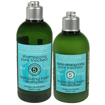 全館特價中-L’OCCITANE歐舒丹 草本淨涼洗髮乳(300ml)+潤髮乳(250ml)