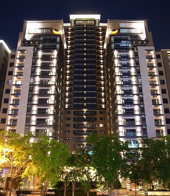 基地總面積近一千三百坪,為超高樓層鋼構制震建築,坪數以 一百一十坪及一百二十坪兩種坪數雙併,九樓以上則以一層一戶規劃為二百三十坪,十戶左右並特別設計為露台,讓主人可以在黃昏時望 見楓紅般的夕陽美景,及遠處清晰而富變幻的大肚山雲海,該建築為坐東朝西向,清晨時的屋後可望見初醒的微陽,在生活上多了份浪漫 與悠閒。