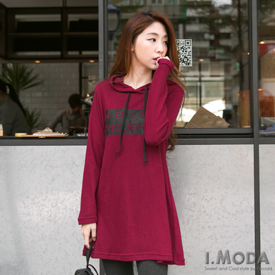 0302新品 愜意風格~質感面料燙印英文圖連帽長版上衣.3色
