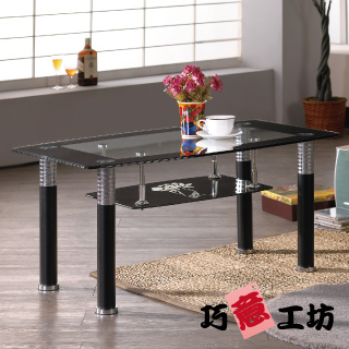 【巧意工坊】丹尼斯3尺玻璃大茶几,整組採用高級PVC電鍍處理,整體質感光滑亮麗,亮麗的質感讓整體更加時尚有型,陽光照在家具上展現出亮麗的光澤,展現出非凡的氣質。桌面採用8mm強化玻璃,質感亮麗有型,強化的材質耐壓耐重,讓您使用安心無負擔。雙層的設計讓您擺放的空間更多,實用機能大大提升,再加上底玻採用的5mm黑色烤漆玻璃,讓您感受到家具亮麗的時尚感,觸感細膩有型,光滑的表面也好保養,讓您愛不釋手。藝術印花玻璃的巧妙妝點,平衡了純黑色的造型,多了一些有趣的元素,讓整體空間更加活絡,美觀又時尚。想要一款美觀又兼具實用機能的家具嗎?【巧意工坊】丹尼斯3尺玻璃大茶几,讓您體驗現代優雅的設計風格!