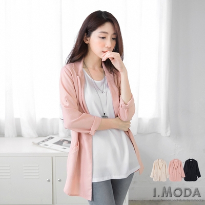 【網友最推薦】-優雅升級~嚴選單釦造型雪紡長版西裝外套.3色