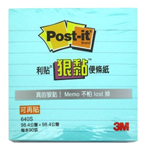 【秋日排行推薦】 3M Post-it 640S利貼狠黏橫式可再貼便條紙 草藍