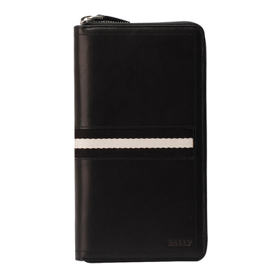 BALLY TAPRUS經典LOGO壓紋雙色織帶小牛皮萬用拉鍊手拿長夾(黑色)商品網址: https://tw.partner.buy.yahoo.com:443/gd/buy?mcode=MV96S...