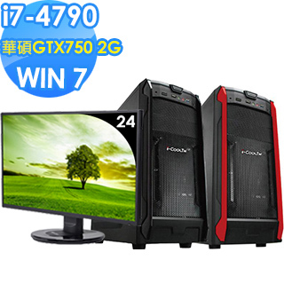 【網友熱評如潮】【華碩H97平臺】新i7四核 WIN 7固態128G獨顯750 2G液晶24型效能電腦組(保固三年)