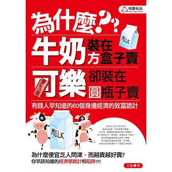 相信常常在網路上購物書的朋友們常常有這種感慨,到處找便宜書實在是很累的事情,小編在此已經為您彙整了為什麼牛奶裝在方盒子賣,可樂卻裝在圓瓶子賣 的超優惠資訊,如果要找尋為什麼牛奶裝在方盒子賣,可樂卻裝在圓瓶子賣的優惠資訊,千萬別錯過(點圖片即可看詳細介紹)