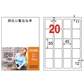 商品訊息功能: 辦公用品A4,45*55mm,圓角20格,20張/包