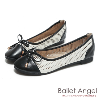 【熱銷女鞋特賣會】-【芭蕾天使】雙色拼接透膚縷空平底娃娃鞋(米白)