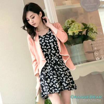 0909新品 甜妞必備~蝴蝶結/碎花圖案縮腰背心式長版上衣?4色 比較評比 ob嚴選
