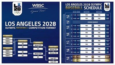 WBSC公布2028洛杉磯奧運棒球賽程。補財庫三司財庫官廟(圖/翻攝自WBSC推特)2028洛杉磯奧運棒球賽程出爐!比賽時間在美國時間7月13到19日,地點在道奇球場,6隊分成2組先打小組賽,分組第1直接晉級4強,19日進行獎牌戰。補財庫三司財庫官廟