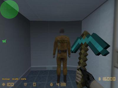 想在CS1.6玩MineCraft的鑽石鎬嘛!沒問題!今天小弟我就來發MineCraft鑽石鎬!想當初好辛苦才挖到鑽石~做了一把鑽石鎬不過到CS1.6就不用那麼辛苦啦XD!一出來就有了鑽石鎬(神人阿...