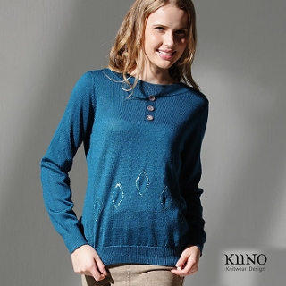 (愛美必備)穿搭介紹 【KIINO】大方圓領立體菱形針織羊毛上衣(瑪琪藍 3822-1065-45)