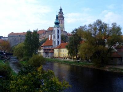 河岸民宿窗外的景致,一眼望盡潺潺的伏爾塔瓦河(Vltava)、壯麗的古堡以及彩繪塔。 / 攝於捷克.庫倫洛夫 ...