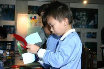 活動進行中看到班爸爸、班媽媽和小菩薩的互動良好,此時也增進了彼此的默契,信心6的黃羿弦小菩薩說:「做紙偶很好玩、很有創意;每個月很開心可以看到班爸爸、媽媽又教我們很多東西,她說今天學到環保和幫助別人。」劉璟篷小菩薩在等剪刀的時候會自動收拾桌面,讓人覺得很貼心。