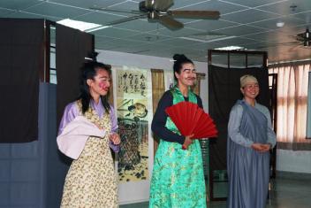 由班媽媽擔綱演出的故事:「心中有佛」,啟發孩子力行「正語」:說話要多多思考,說出來的話能讓人歡喜,自己也能輕安。
